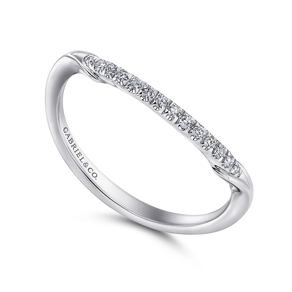Completing the look is a matched 14K white gold Gabriel & Co. fitted wedding band, accented with 0.08 carat of diamonds, designed to sit seamlessly alongside the engagement ring for a cohesive and elegant bridal set.