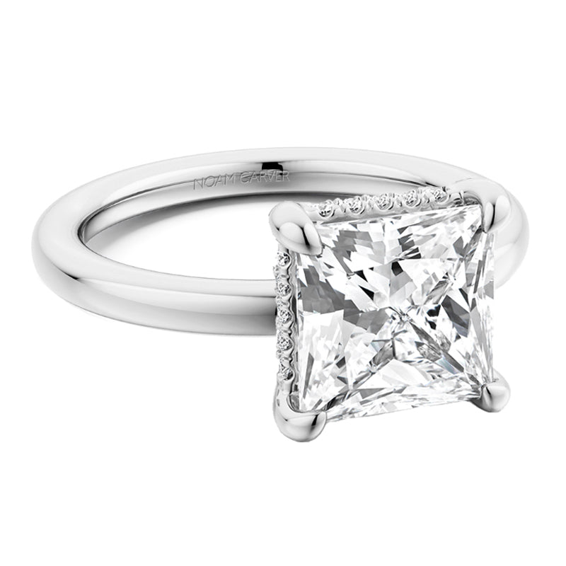 Crafted to capture the essence of modern romance, this Noam Carver engagement ring in 14K white gold blends timeless elegance with contemporary design. At its heart lies a stunning 0.91 carat princess cut diamond, showcasing a crisp silhouette with I1 clarity, F colour, and a good cut—a radiant symbol of a love that's bold, resilient, and beautifully unique.